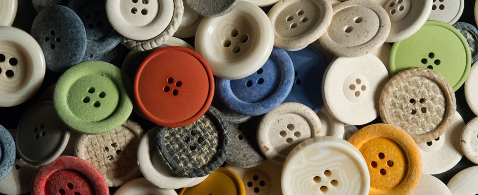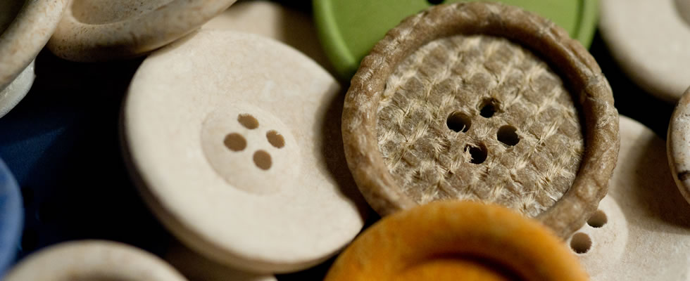 Les éco-boutons sont fabriqués à partir de matières premières naturelles recyclées telles que le chanvre, le papier et le coton, mélangées à plus de 50 % à des matières synthétiques récupérées à partir des déchets de productions.